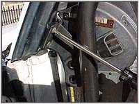 At this point, the kit is installed. To fold down your windshield you only have to remove the top and the four overhead braces that connect the windshield to the targa, release the latches on both sides of the dashboard, and gently tilt the windshield forward until the snubbers rest on the hood.