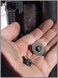 The two new snubber towers that attach to the top of the windshield also uses the stock screws that are already there. The screws might be painted, but a quick twist of the screwdriver will back them out easily. You will find the tie-down strap loop mounting bosses beneath the small rubber snubber that came stock on the top-center of the windshield. The original (centered) rubber snubber is held on by adhesive, so just be careful as you remove it. A little nail polish remover will take care of the remaining adhesive.